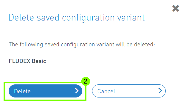 Sollte eine gespeicherte Variante nicht mehr benötigt werden, kann sie ganz einfach über das Symbol „X“ (1) entfernt werden. Anschließend ist eine Bestätigung des Löschvorgangs erforderlich (2).
