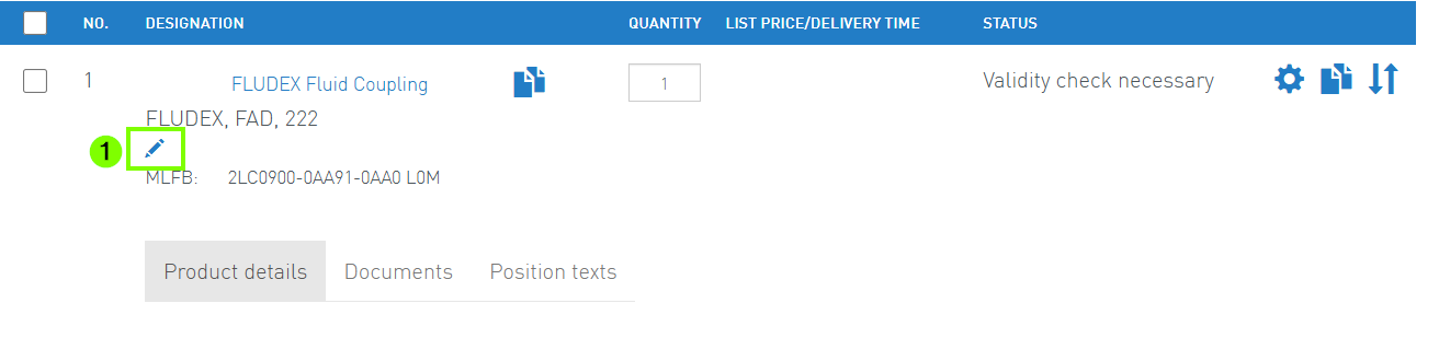 Hier werden dann die MLFB-Nummern oder bei FlenderOne Getrieben die ConfigID angegeben.