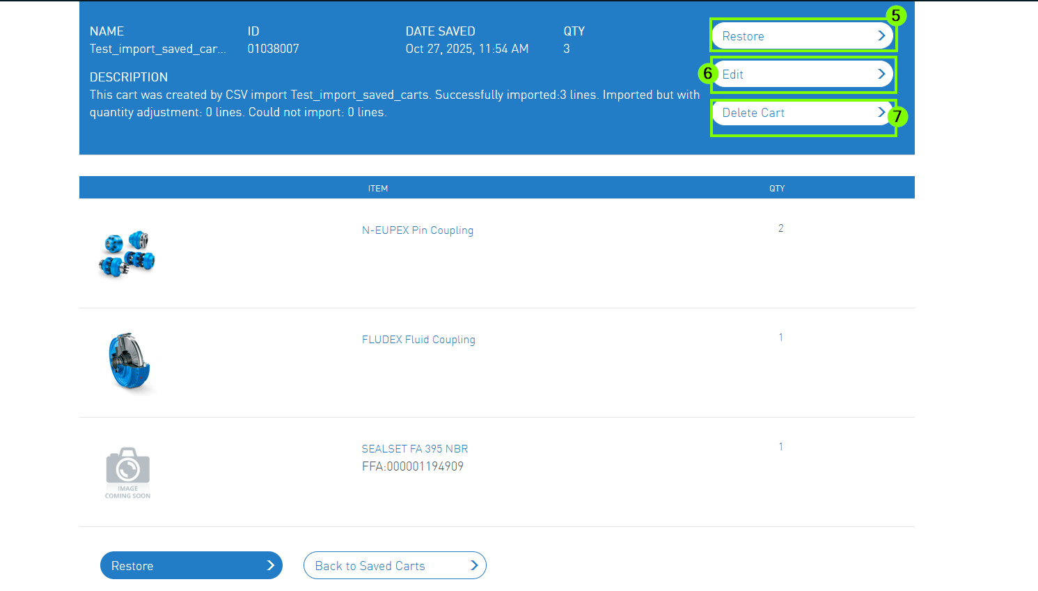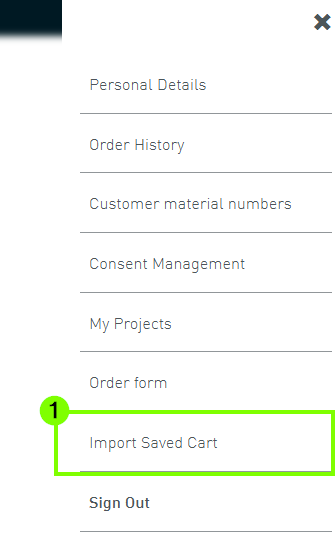 You can select the desired parts (4) and either add them to the cart (5) or add them to your selected project in "My Projects" (6).