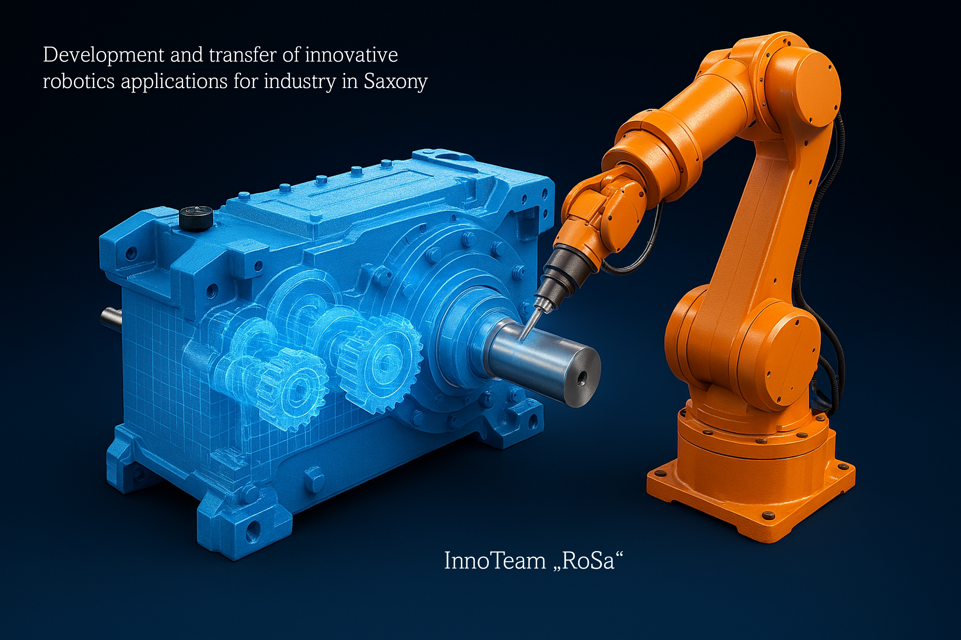 The objective of the InnoTeam RoSa project is to integrate core technologies to expand the control and automation functions of industrial robots in line with the requirements of industrial partners. This strengthens collaboration between research and industry and enhances the innovation capacity of companies in the Free State of Saxony. InnoTeam RoSa also supports the qualification of participating companies and project staff and contributes to the creation and safeguarding of jobs in the region.