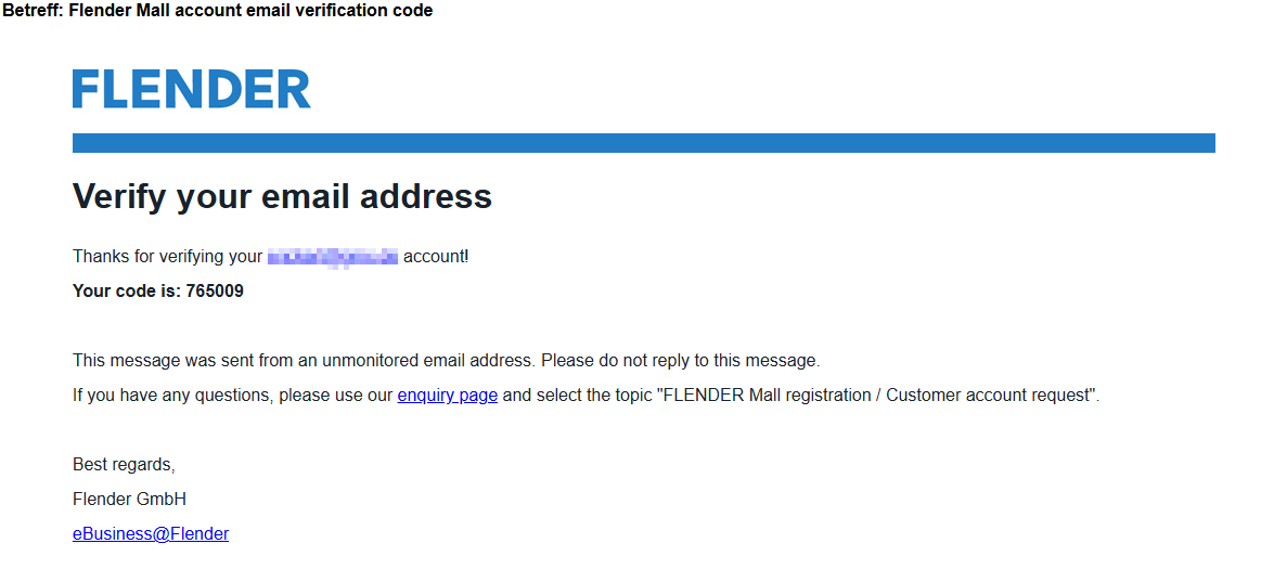 Schlüssel mit dem Flender Mall-Account verbunden werden (14).