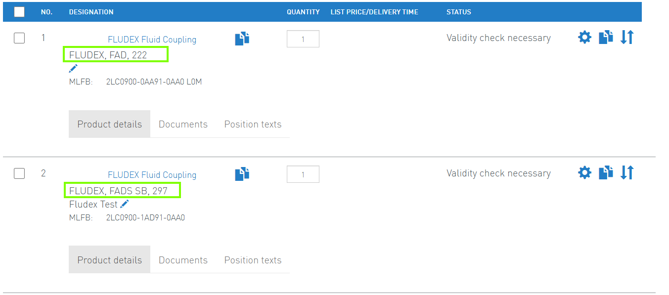 Here, the MLFB numbers or, for FlenderOne gear units, the ConfigID are specified.