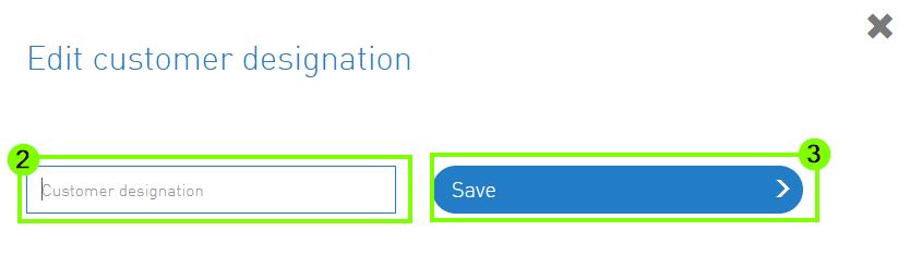 In the following menu, a freely selectable designation can be entered (1). This will be saved in the customer data by selecting "Save" (2).